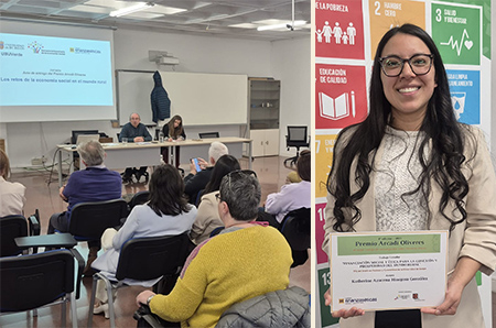 Este año, el Premio Arcadi Oliveres, ha recaído en Katherine Azucena Hinojosa por su Trabajo de Fin de Grado (TFG) titulado “Financiación social y ética para la conexión y prosperidad del mundo rural”, un estudio sobre el potencial en entornos rurales de las finanzas éticas como herramienta para fortalecer el desarrollo territorial e impulsar modelos económicos más inclusivos y sostenibles. Cada año, desde 2021, el Premio Arcadi Oliveres busca‬‭ fomentar‬‭ el‬‭ interés‬‭ y‬‭ la‬‭ investigación‬‭ en‬‭finanzas‬‭ éticas,‬‭ así‬‭ como‬‭ reconocer‬‭ y‬‭ difundir‬‭ las‬‭ buenas‬‭ prácticas‬‭ educativas‬‭ sobre‬‭finanzas‬‭ éticas‬ en‬‭ diferentes‬‭ niveles‬‭ educativos,‬‭ como‬‭ reconocimiento‬‭ a‬‭ la‬‭ incansable‬‭ labor‬‭ docente‬‭ de‬ Arcadi Oliveres.‬
