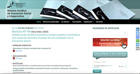 Disponible el número 49 de ‘CIRIEC-España, Revista Jurídica de Economía Social y Cooperativa’, sobre compra pública estratégica con la Economía Social