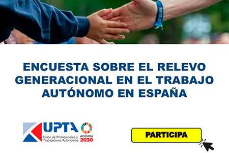 La Unión de Profesionales del Trabajo Autónomo (UPTA España) está realizando un estudio a nivel nacional sobre el relevo generacional en el trabajo autónomo en España. Para el mismo anima a participar a personas trabajadoras autónomas de cualquier comunidad autónoma rellenando un sencillo formulario.